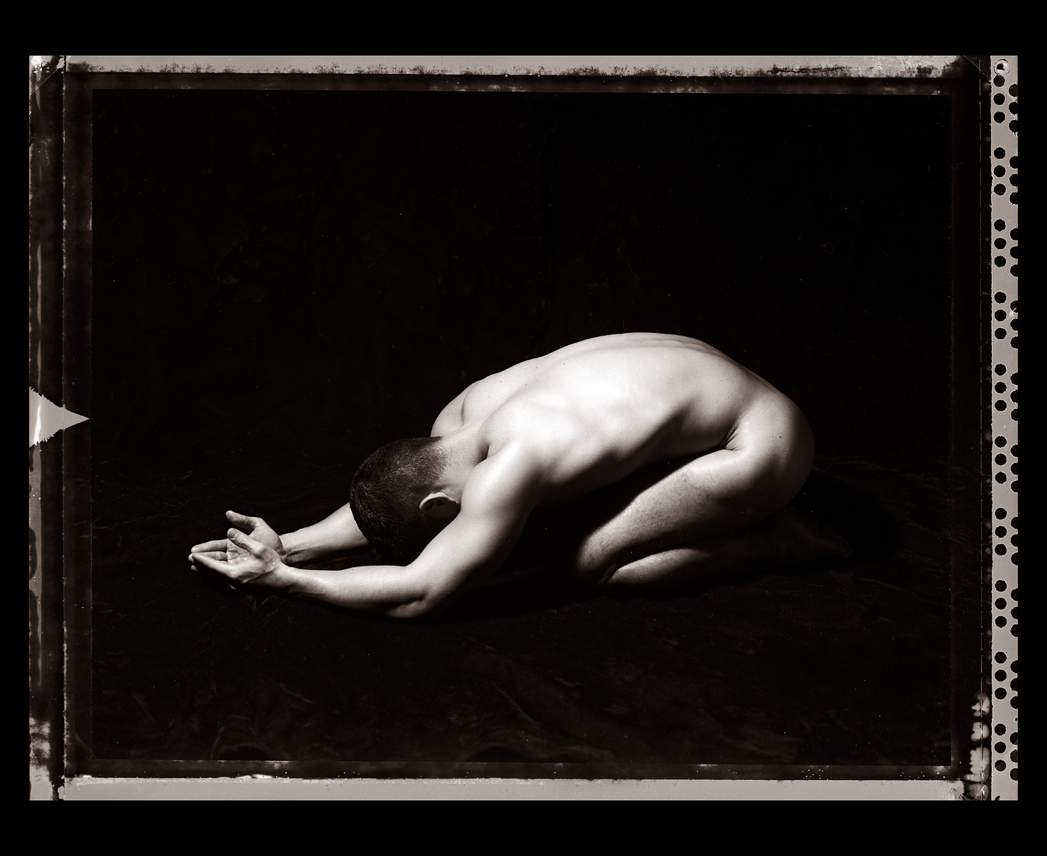 I had a photoshoot at the end of last year (sorry for the delay in getting these online, but life happens) with a fantastic model, Thomas Roblez. I found him on Instagram. He has a striking, somewhat androgynous look and just radiates sexy beauty. We did a session in my studio entirely with the big Century Master portrait camera and the Kodak 405 Portrait lens. It’s a soft focus lens with a very distinctive signature look, something not easy to replicate even with extensive Photoshop work.