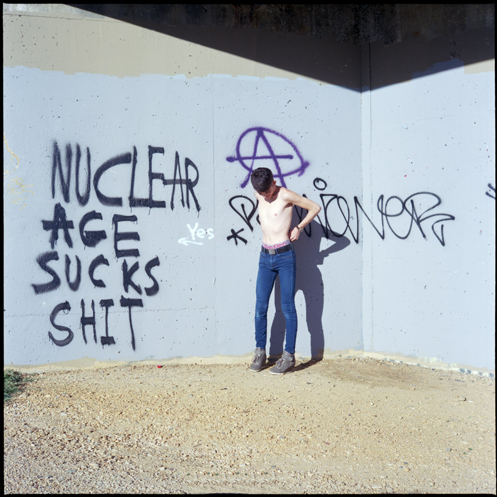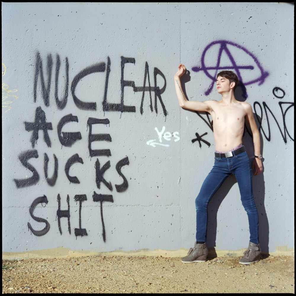 While we were out scouting a location, Grayson saw this bit of graffiti and said, “I want my picture taken next to a sign that says, ‘Nuclear Age Sucks Shit’. The colors were cool, the message edgy, and the model was inspired, so who was I to say no? I’m going to keep it on my list of places to shoot.