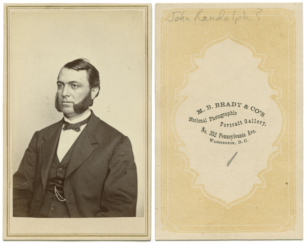 I’ve seen enough of Brady’s CDVs now that I’ve noticed a pattern in the labeling – if you want to tell which studio produced the image, first look at the front – if it says Washington or New York on the front, that’s a 100 % guarantee of where it was taken. If it is not labeled on the front, look at the photographer’s imprint on the verso. The studio that produced it will be listed first: a Washington DC portrait will say “No. 352 Pennsylvania Av., Washington DC & New York”, whereas a New York portrait will say “Broadway & 10th Street, New York, & 352 Pennsylvania Avenue, Washington DC”. Strangely, the Washington DC ones often list only “New York” as the second address, if they list it at all (I have seen it all three ways,”Broadway & 10th”, “New York” and no second address), but the New York ones seem to always list the full “352 Pennsylvania Avenue” as the second address. This of course does not take into account the E&HT Anthony CDVs, which do not list any Brady studio address, but rather state “Published by E & HT Anthony, 501 Broadway, New York” very prominently, and then include the following variations: