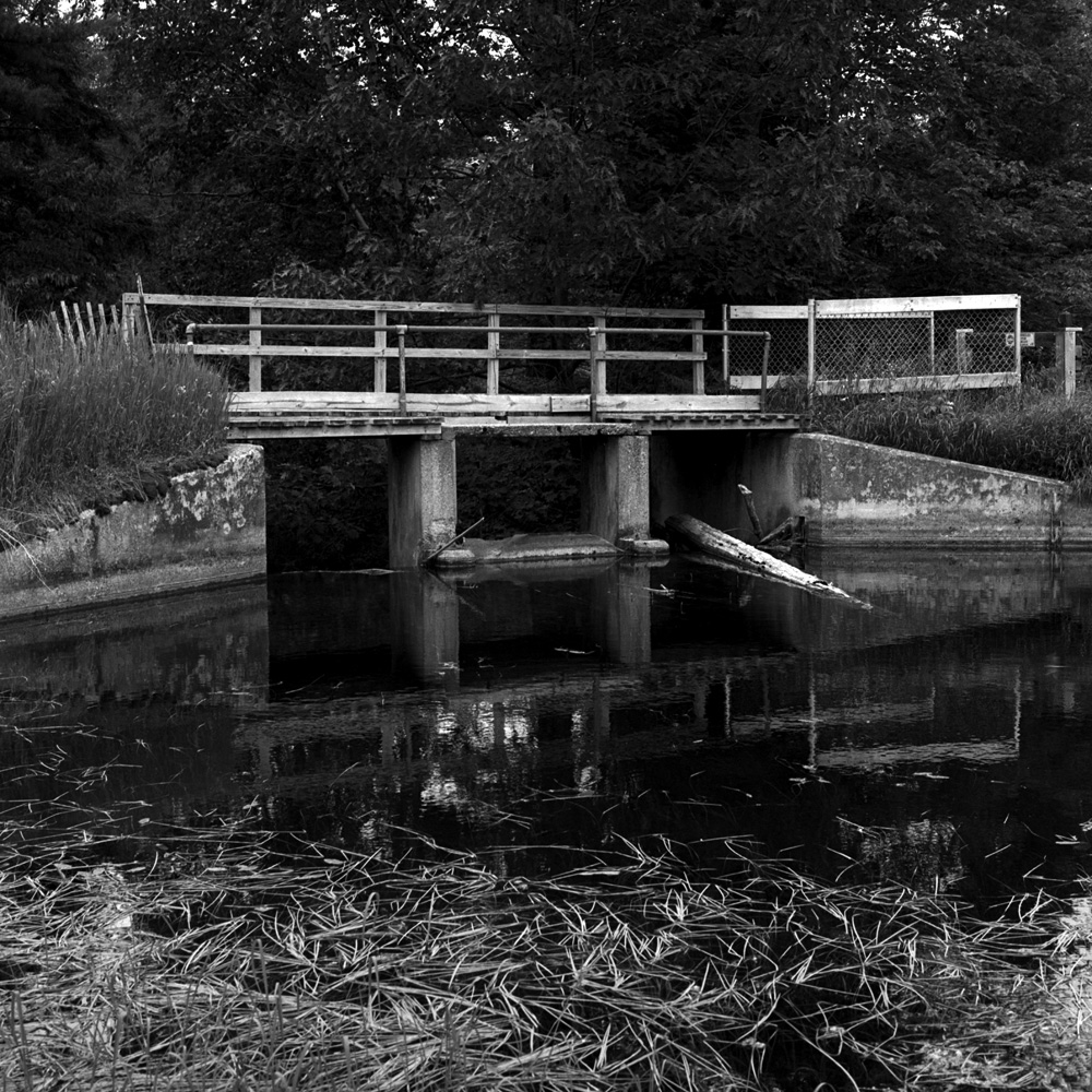 The bridge is over a sluice/runoff drain for the lake. Judging from the stands of dead trees sticking out of the lake waters, the lake was an artificial lake. Why it was created I’m not sure, but I’m not about to complain.