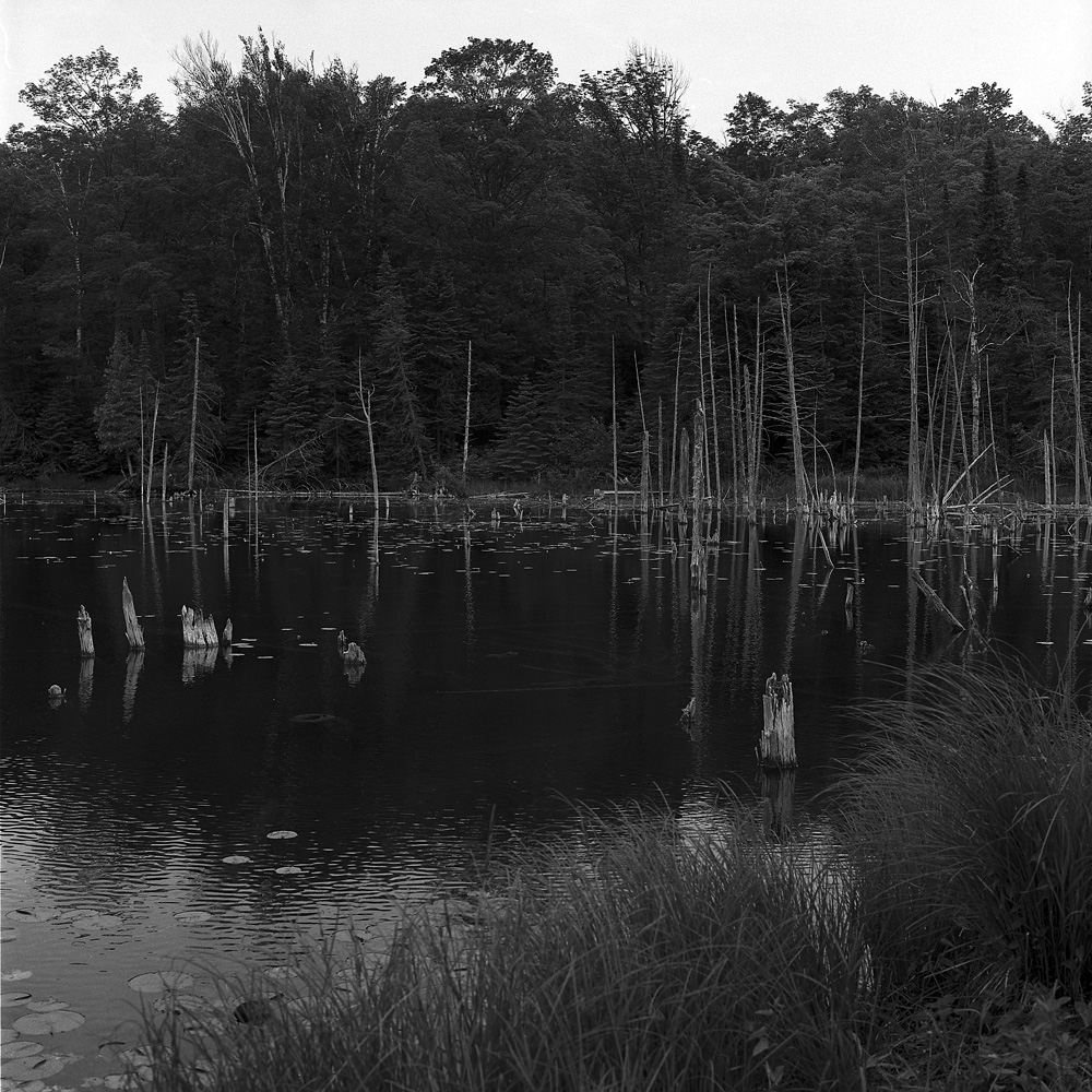 Here you can better see the snags of dead trees reflected in the waters. Other than the leaden white sky (there was a little overcast, but still bright sun), I’d say challenge met.