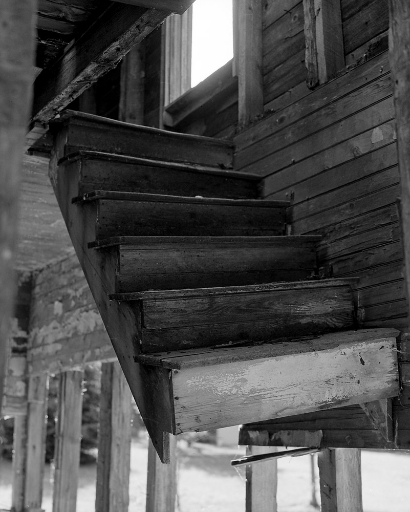 One wall of the house is essentially gone, and you can look inside the structure through it. I would NOT attempt to enter, as there is a considerable debris field on the floor of the lower level, making for a prime residential facility for wildlife of the four-legged and no-legged varieties. You can see the remnant of the staircase through the opening in the wall, though. The texture of the wood and the coloring of it reminded me a bit of Bodie, the California gold-mining ghost town in the Eastern Sierra.