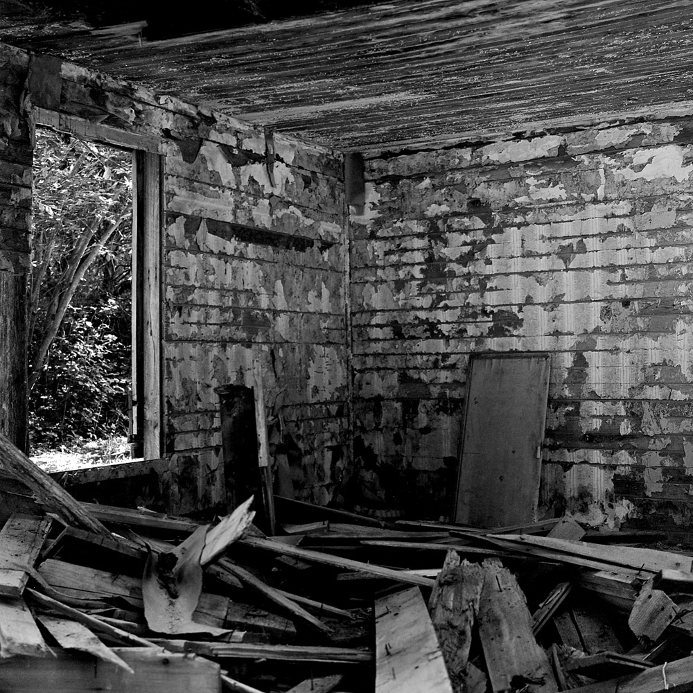 This is a view of the debris field and the remaining structural walls of the house. Amazing how the light level balanced between inside and outside- no HDR or even burning/dodging required to preserve interior and exterior detail alike through the window frame.