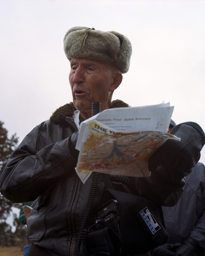 I’ll close with another portrait of Ed, with his swagger stick made from a .50 caliber machine gun bullet. Ed at the Stone Bridge