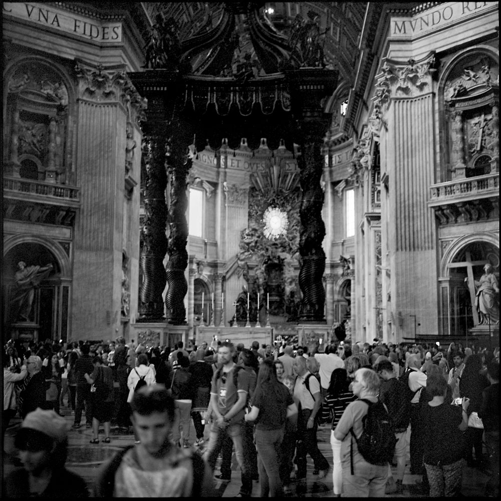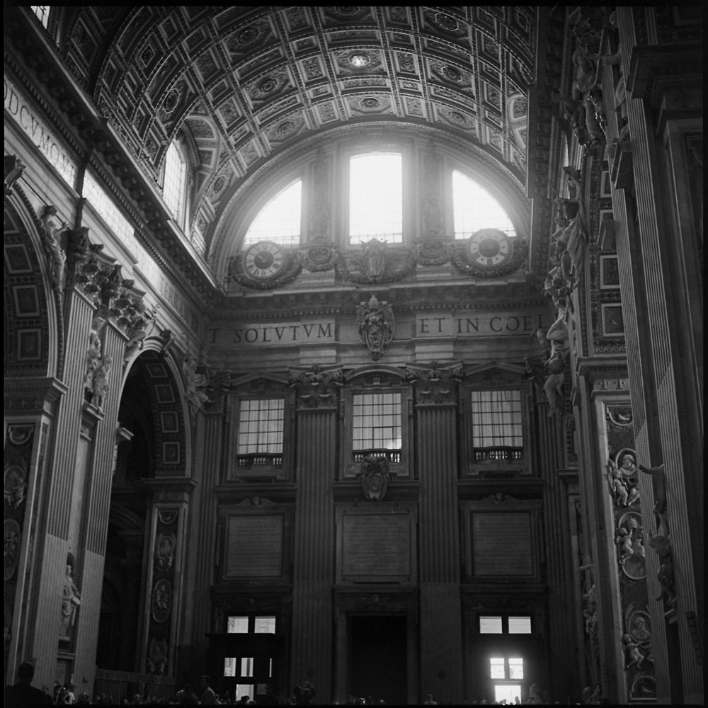 St. Peter’s Basilica Facade. This is one of the images that made me respect the Belair and its results more than I did initially. It’s still not going to ever match a serious panorama camera like a Horseman 6×12 with a highly corrected glass lens, but it does a great job for what it is, and certainly it scores extremely well in the value-for-money proposition – I got mine used for $200, whereas a used Horseman would set you back closer to $2000.