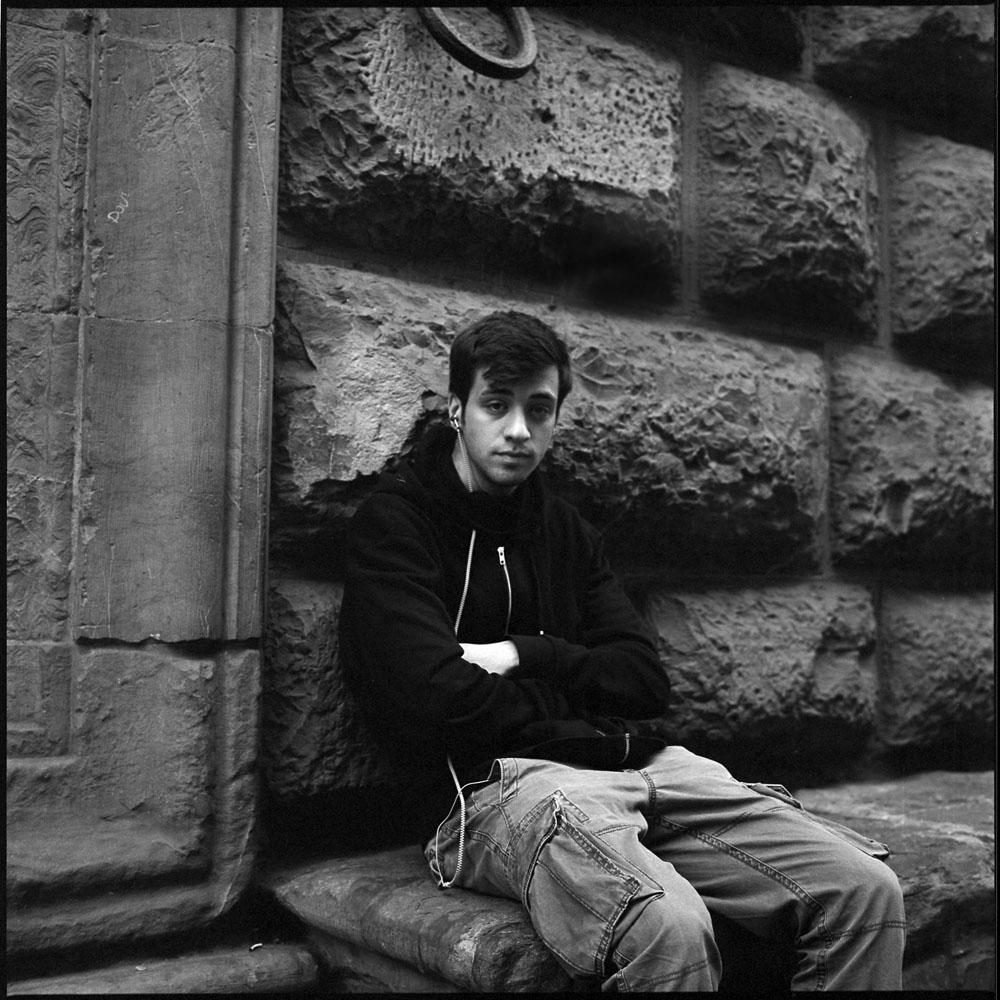I wish I’d had a second film back for the RZ that I could have had loaded with Ektar 100, as her hair was pink. This was a test shot for me with the Mamiya RZ 67 and the 180mm f4.5 wide open. It gives a lovely compressed depth-of-field look, and the bokeh of the lens is very smooth and pleasing.