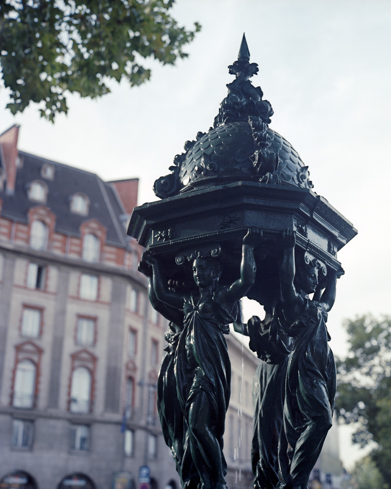 Last but not least, here is a public drinking fountain. I tend to notice them because here in DC for the most part if they exist at all they don’t work. In the 1870s, Baron Haussmann installed public drinking fountains across the city as part of a sanitation campaign, bringing fresh, clean drinking water to everyone. The design of the fountains was suitably ornate, bringing beautification along with safety.