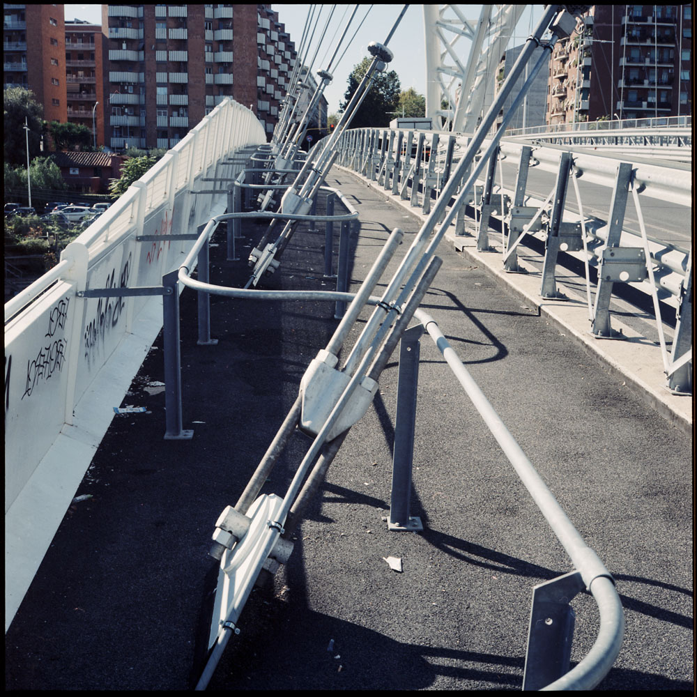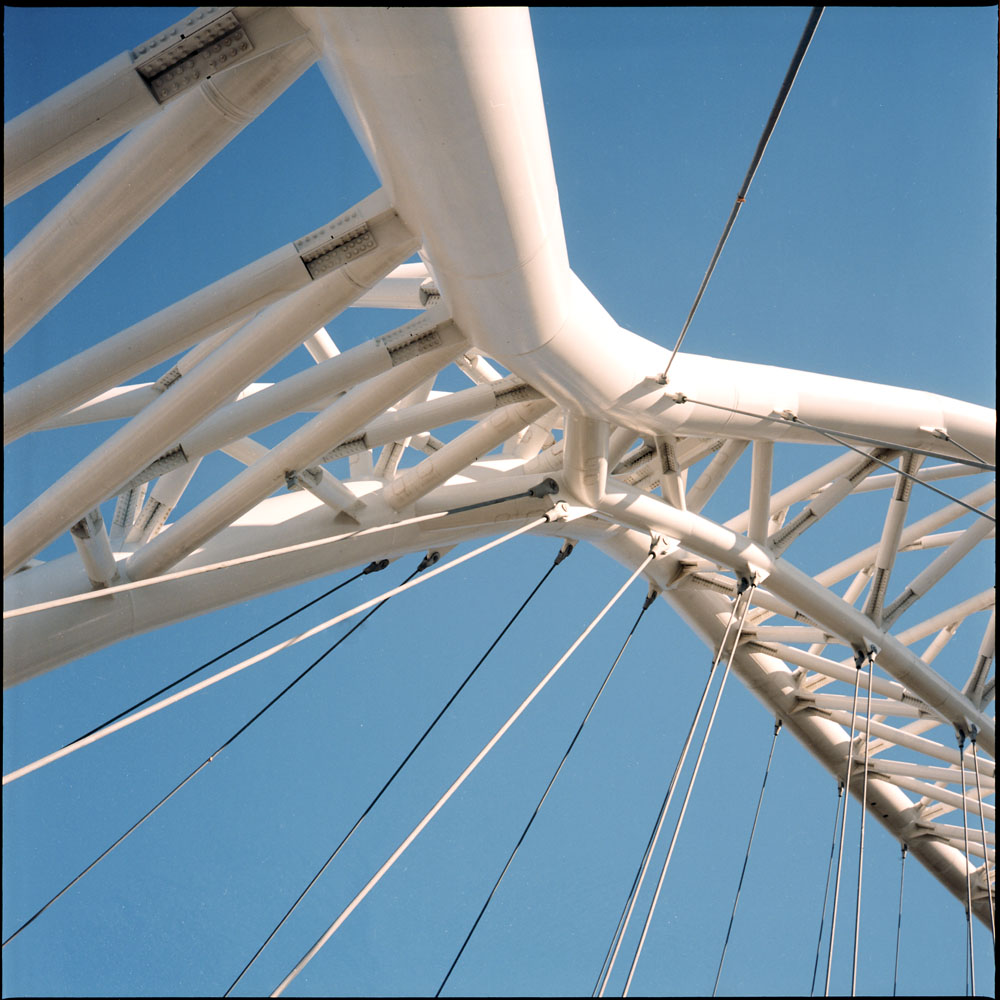 Everything about this bridge was designed with an artistic conceit, even the railings that surround the suspension cable anchor points – they undulate like the bridge form itself, like a ribbon or a snake winding its way between the cables.
